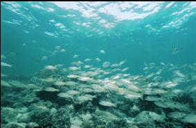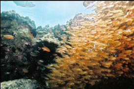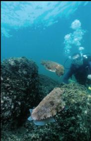 While there is some good wreck diving on the inside (Persian Gulf) coast of the U.A.E. , most of the diving is done on the East coast in the emirate of Fujairah. The visibility is better here and there is more marine life. There is apparently some really good high-current wall diving up on the Musandam peninsula in the Straits of Hormuz, but I didn't have the time to organize a trip up there. I did a lot of shallow shore diving at Snoopy island, and some boat diving at Dibba rock and Sharm rocks. There wasn't a huge amount of coral at the sites I visited (Some hard corals and scattered soft corals), but the fish life here was amazing. Sometimes there were so many, I had to clear a path through them to see the bottom. Small anemones and anemone fish were everywhere. I saw groups of cuttle fish and small moray eels on every dive. Blacktip reef sharks are common, but I only saw a dead one caught in a snagged fishing net. I saw lots of stingrays, turtles, scorpion fish, lion fish, etc.. etc.. The water was 36 degrees Celsius when I dove here. I just wore a pair of shorts and felt almost too warm. I had to find a few cooler pockets of water to duck into and cool down. Visibility ranged from 20 feet to 50 or so and depth for my dives was 10- 60 feet. It's too bad this place is on the opposite side of the world from where I live. Between the diving, the desert and the sights of Dubai, I wouldn't pass on a chance to come here again.